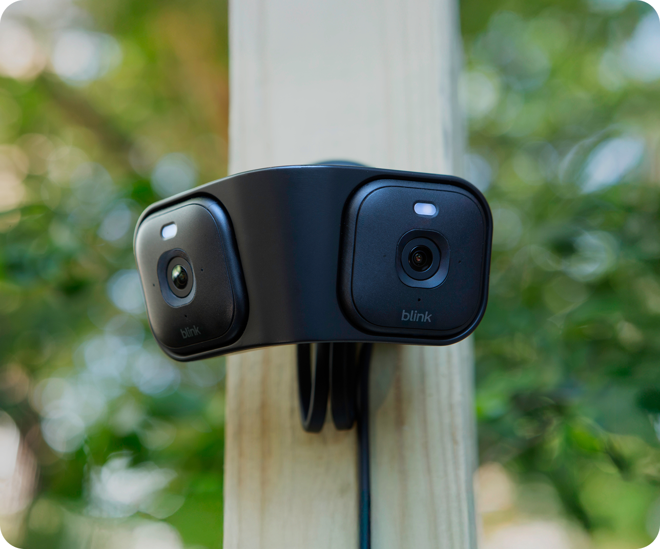 Blink Arc is a compact, weather-resistant mount that connects two Blink Mini 2K+ cameras, delivering 180° panoramic live view with a Blink Plus Plan (sold separately). Two cameras. One power source. Complete coverage.